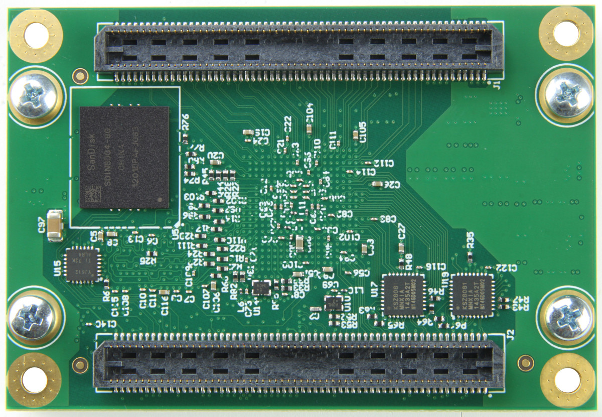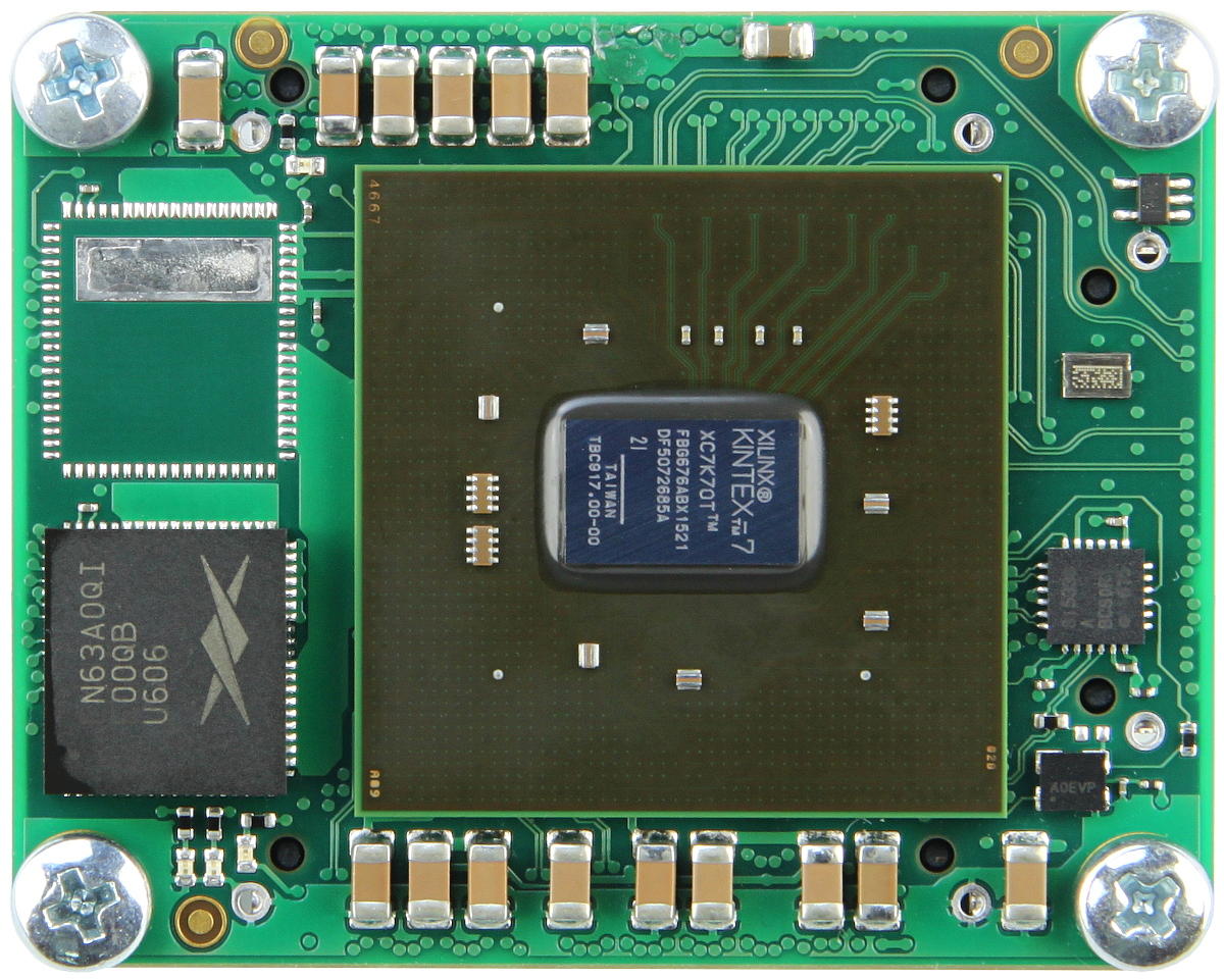 Система на модуле (System on Module или SOM) – это плата, которая объединяет в себе основные элементы системы обработки данных и позволяет подключить их к несущей плате с помощью разъёмов или пайки. Элементами платы могут быть микропроцессор, ПЛИС или система на кристалле (SoC), энергонезависимая флэш-память, энергозависимая память типа RAM и DRAM, модули управления тактовой частотой и питанием. Плата обычно содержит периферийные функции, интегрированные в установленную ПЛИС или СнК. А несущая плата позволяет реализовать специфические функции устройства, например, соединение с внешними устройствами посредством различных интерфейсов. Преимуществами SoM модулей являются ускорение процесса разработки с одновременным снижением рисков, более низкая стоимость системы и возможность обновления вычислительной системы (например, SoC или FPGA) без изменения несущей платы. Снижается риск ошибок при проектировании и изготовлении аппаратуры с высокой плотностью элементов.